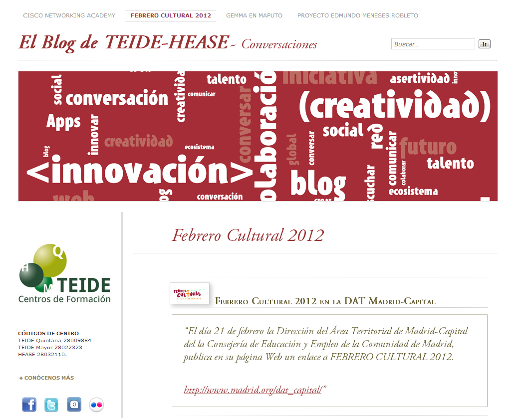 Le escribimos en nombre de los centros de formación TEIDE-HEASE. Los días 13 y 14 realizaremos en nuestras instalaciones un evento llamado “Febrero Cultural”, esos dos días interrumpimos el ritmo habitual de las clases y llenamos el centro de conferencias, talleres, etc.