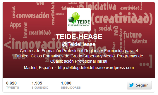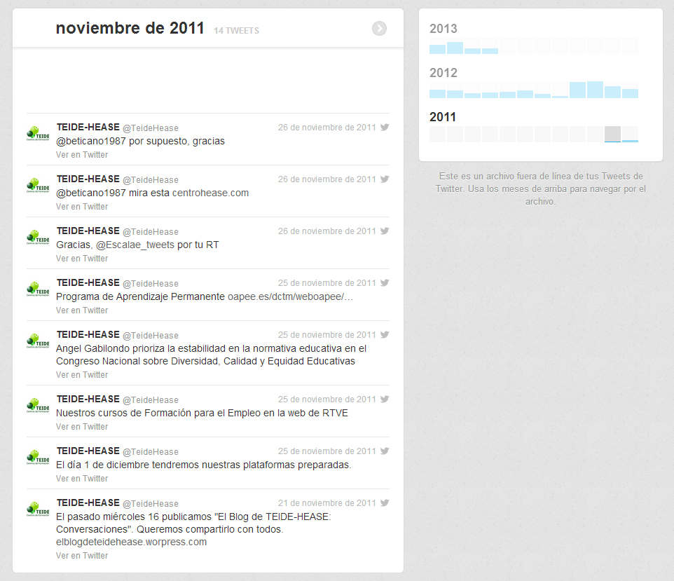 El 21 de noviembre de 2011 empezamos a publicar los primeros tuits en nuestra cuenta Twitter @teidehease.