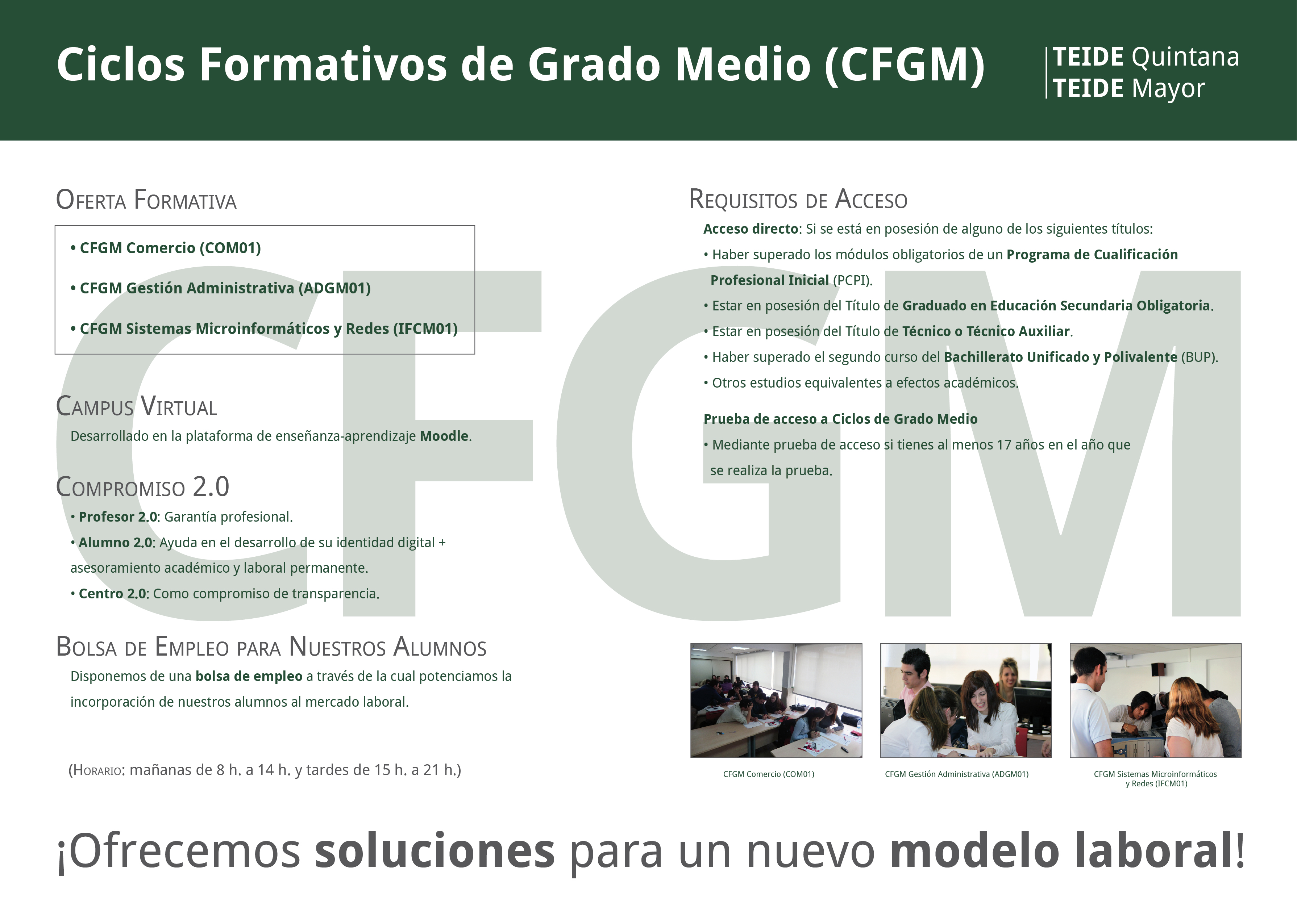 Presentamos la oferta formativa de TEIDE Centros de Formación para Ciclos Formativos de Grado Medio (CFGM) del curso 2013-2014.