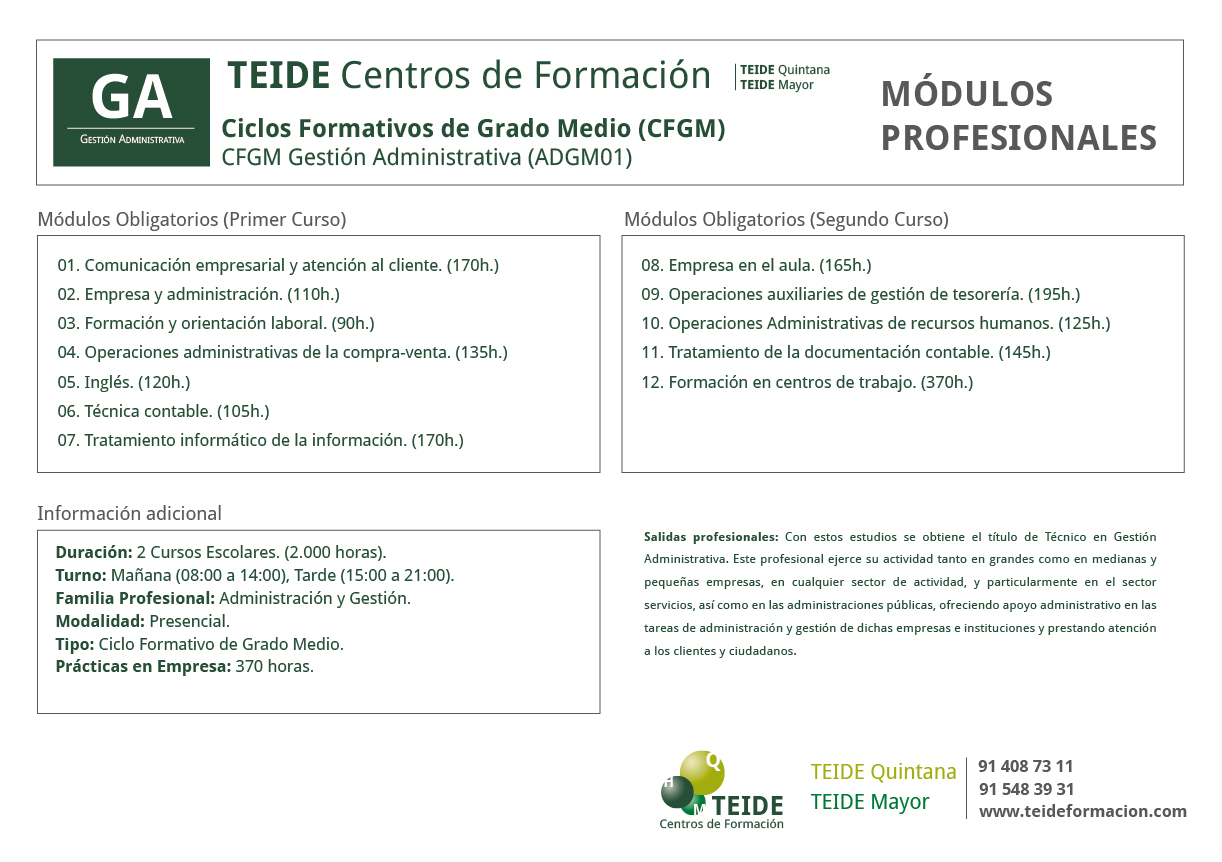 Podrá trabajar como auxiliar administrativo, ayudante de oficina, auxiliar administrativo de cobros y pagos, de gestión de personal, de las administraciones públicas, administrativo comercial, recepcionista, empleado de atención al cliente, de tesorería, de medios de pago, etc.