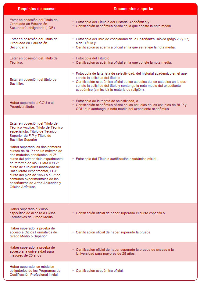 Requisitos de acceso y documentación a aportar.