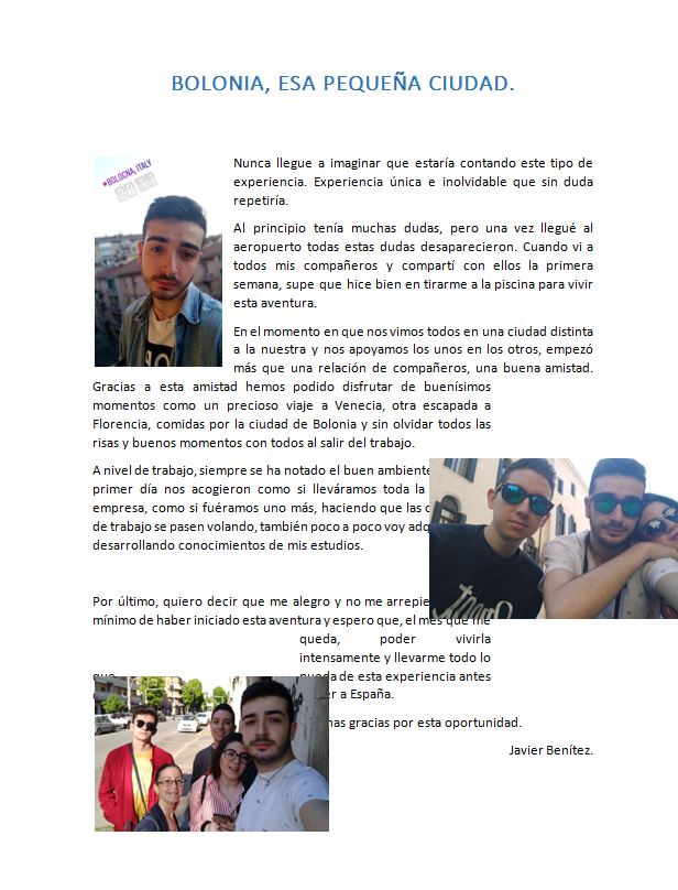 Nos están llegando las primeras impresiones de nuestros Erasmus+ 2018. Están vienen desde Italia, y hemos querido mantener la maquetación tal cuál nos la han enviado.