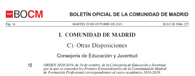 ORDEN 3029/2019, de 16 de octubre, de la Consejería de Educación y Juventud,
