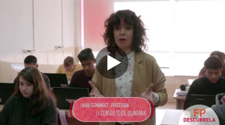 «Laura Fernández, profesora del Centro TEIDE Quintana, nos cuenta qué aprenden los alumnos en el Título Profesional Básico en Informática de Oficina. Además, nos explica las diferentes salidas profesionales y académicas que pueden escoger una vez han finalizado sus estudios». (Descubre la FP.org).»