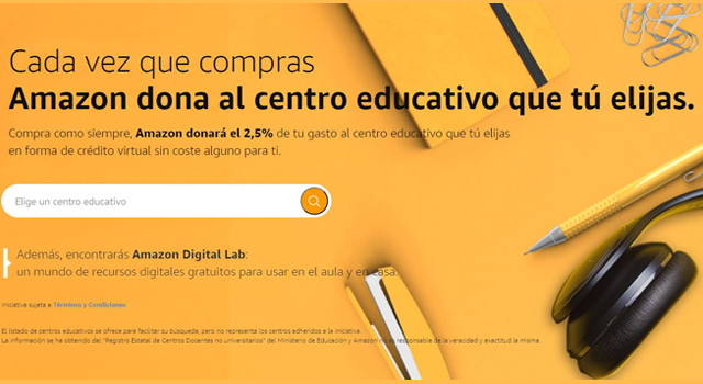 - A partir del 21 de septiembre hasta el 21 de marzo de 2021, Amazon donará a los centros educativos un porcentaje de todas las compras realizadas por aquellos clientes que se hayan unido a la iniciativa.