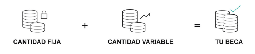 La beca es la suma de distintos componentes. Para calcular cuánto te corresponde, debes tener en cuenta que la beca consta de una cantidad de dinero fija (cuantías fijas) y de una cantidad de dinero variable (cuantía variable).